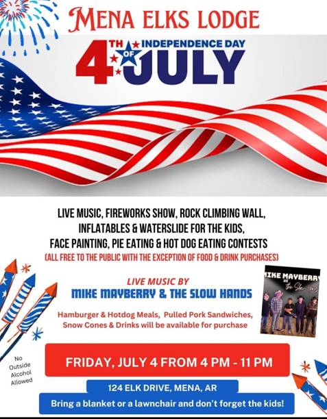July 4: Fireworks at Elk’s Lodge. (More info below)